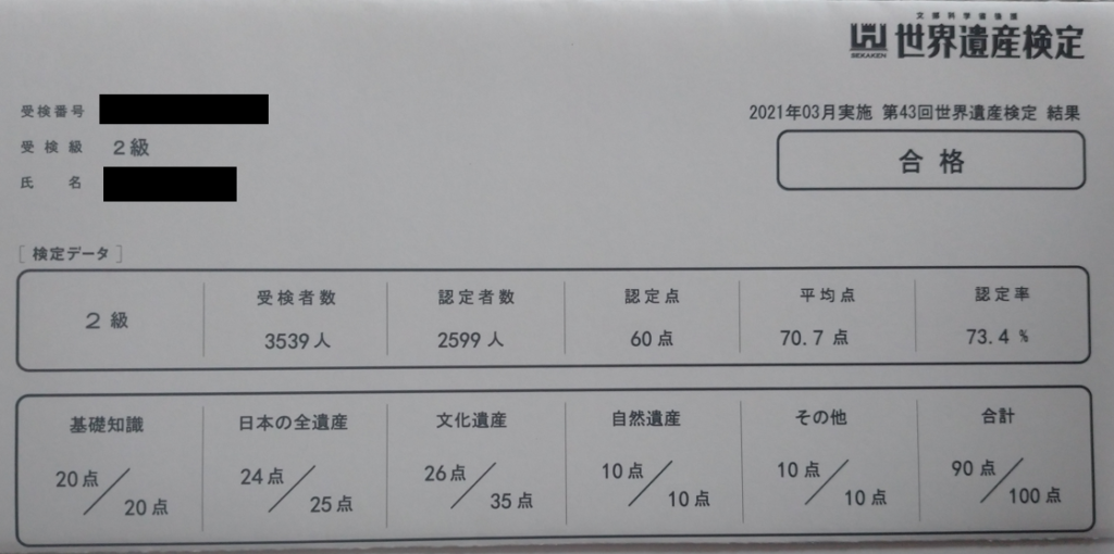 私の世界遺産検定2級の結果は!!!